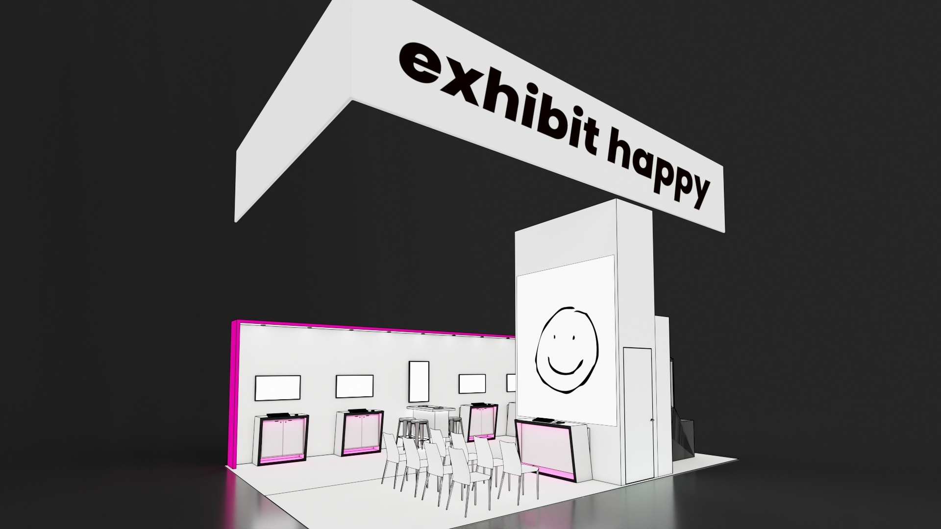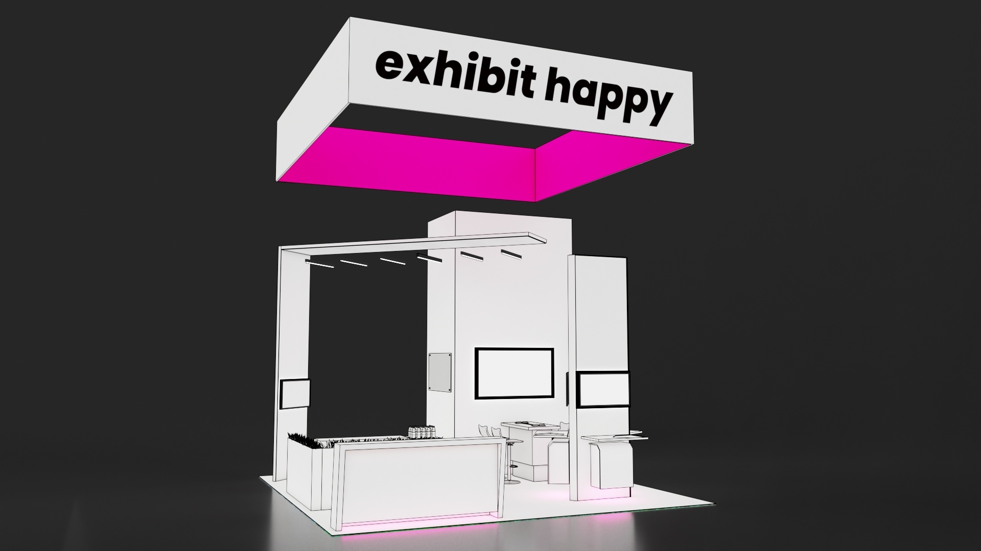 - Lighting: This is the best way to add drama to any environment, but it comes at a cost. Again, if the lighting is required overhead to illuminate the booth from the ceiling, that comes with a hefty rigging cost. Ask your exhibit designer if lighting can be built into the architecture with less expensive LED tape lights to draw attention to key messaging or product areas.